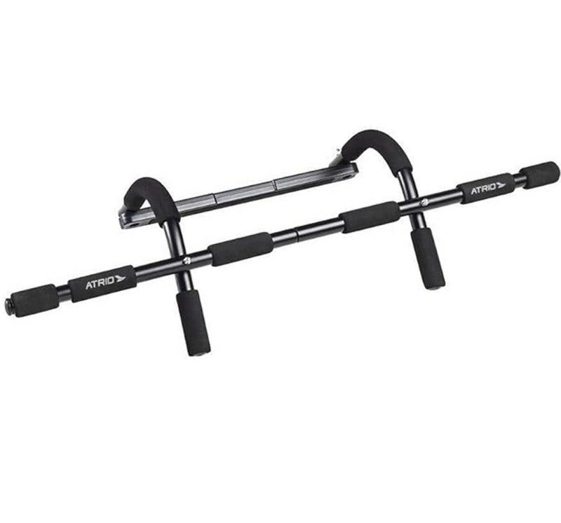 Entrena en casa de forma práctica y segura con la barra de dominadas para puerta, ideal para fortalecer brazos, espalda, pecho y abdomen sin necesidad de perforar paredes.
